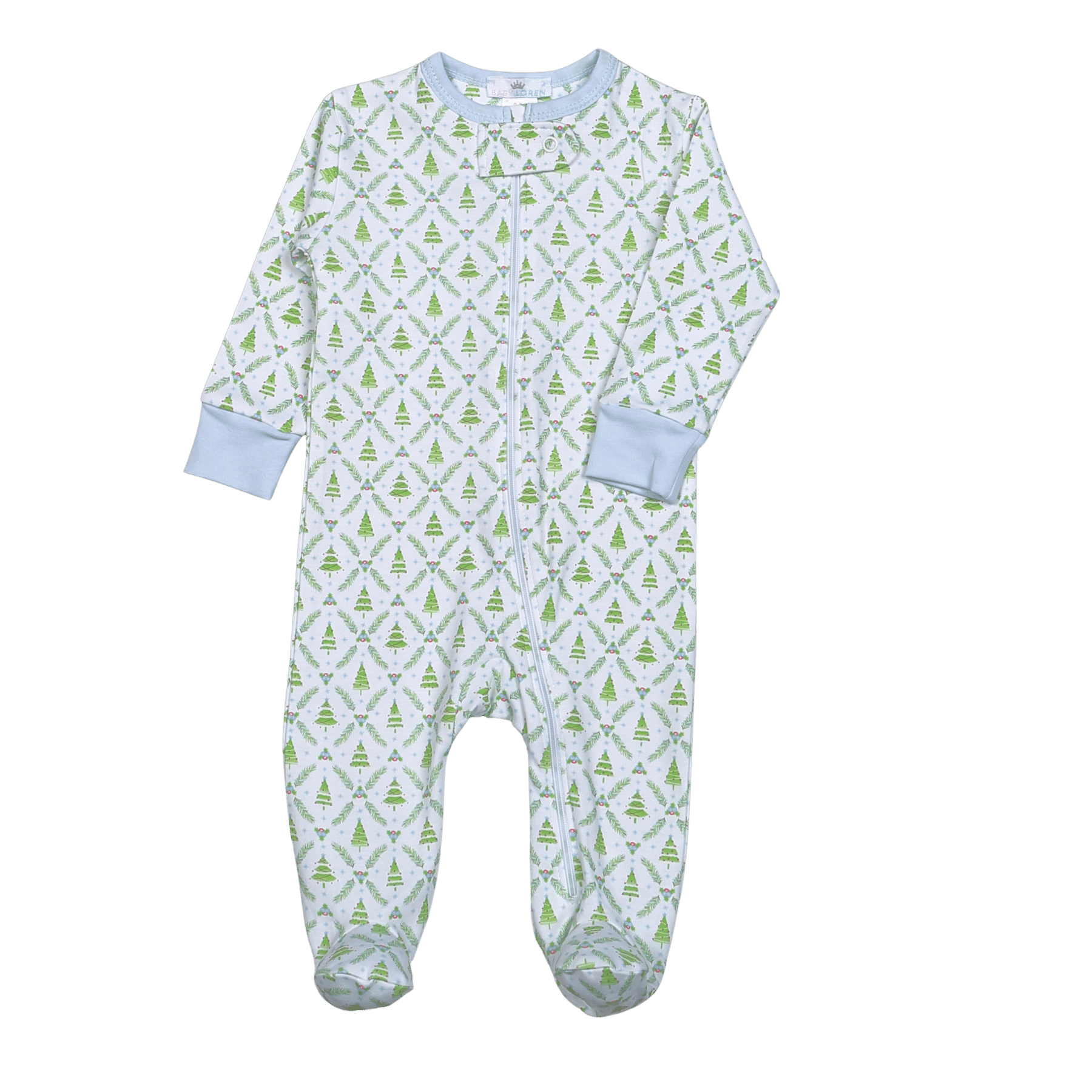 Blue Lamb Print Zipper Footie