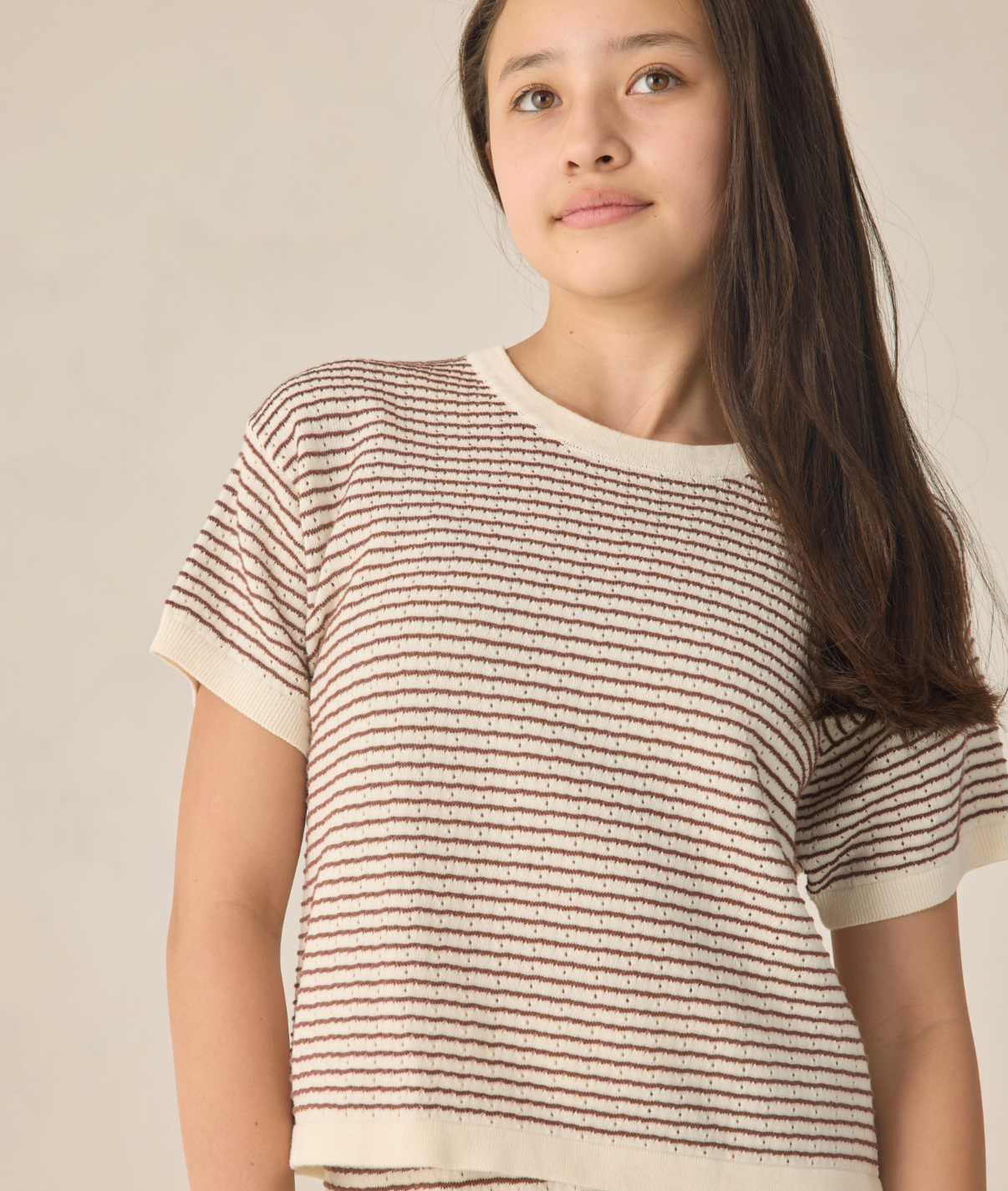 Teen Boxy Knit Tee Chocolate Stripe
