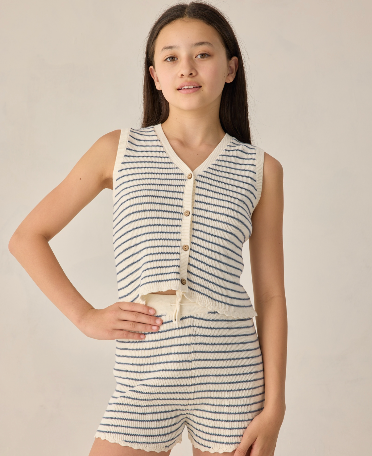 Teen knit Vest Set Marine Stripe