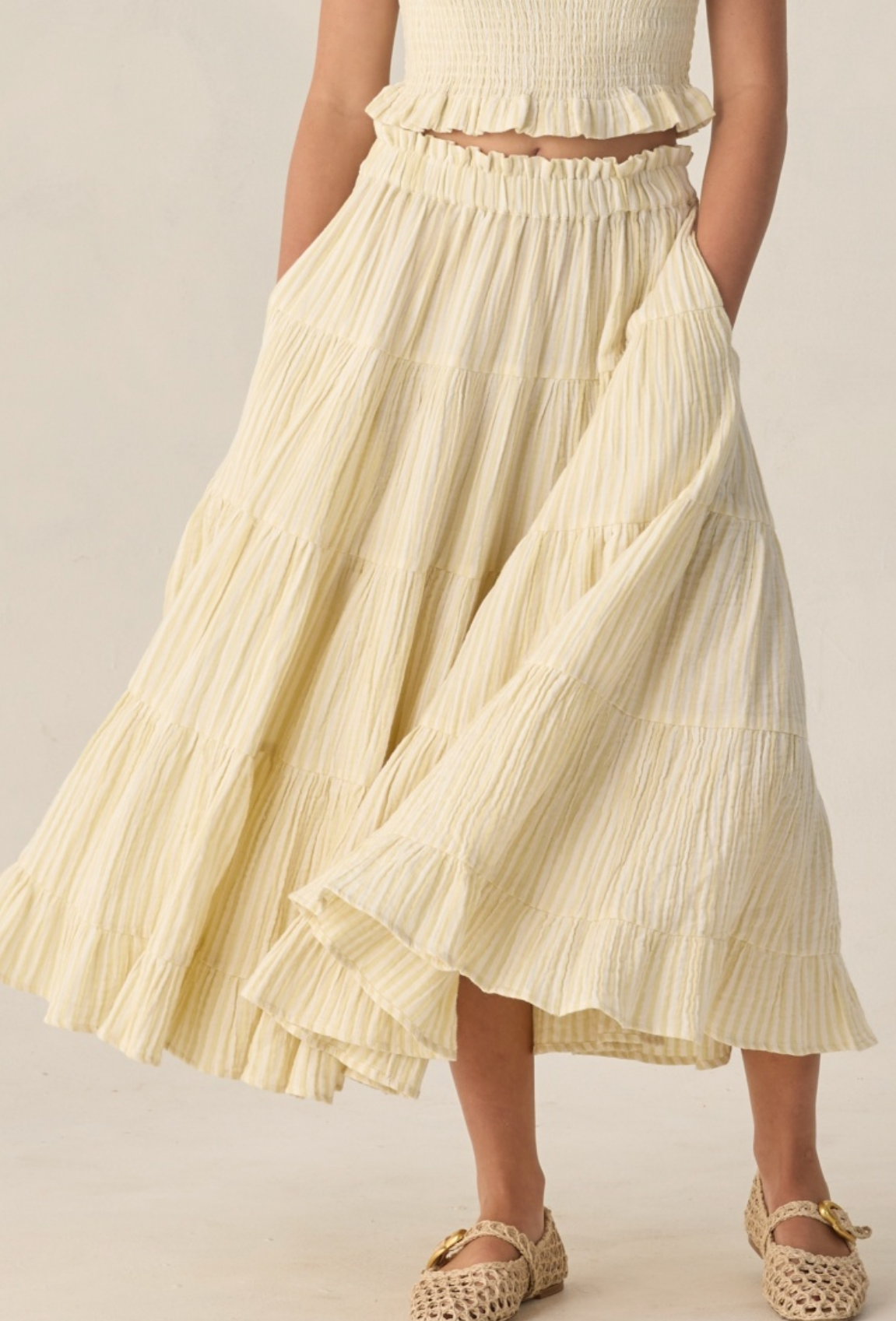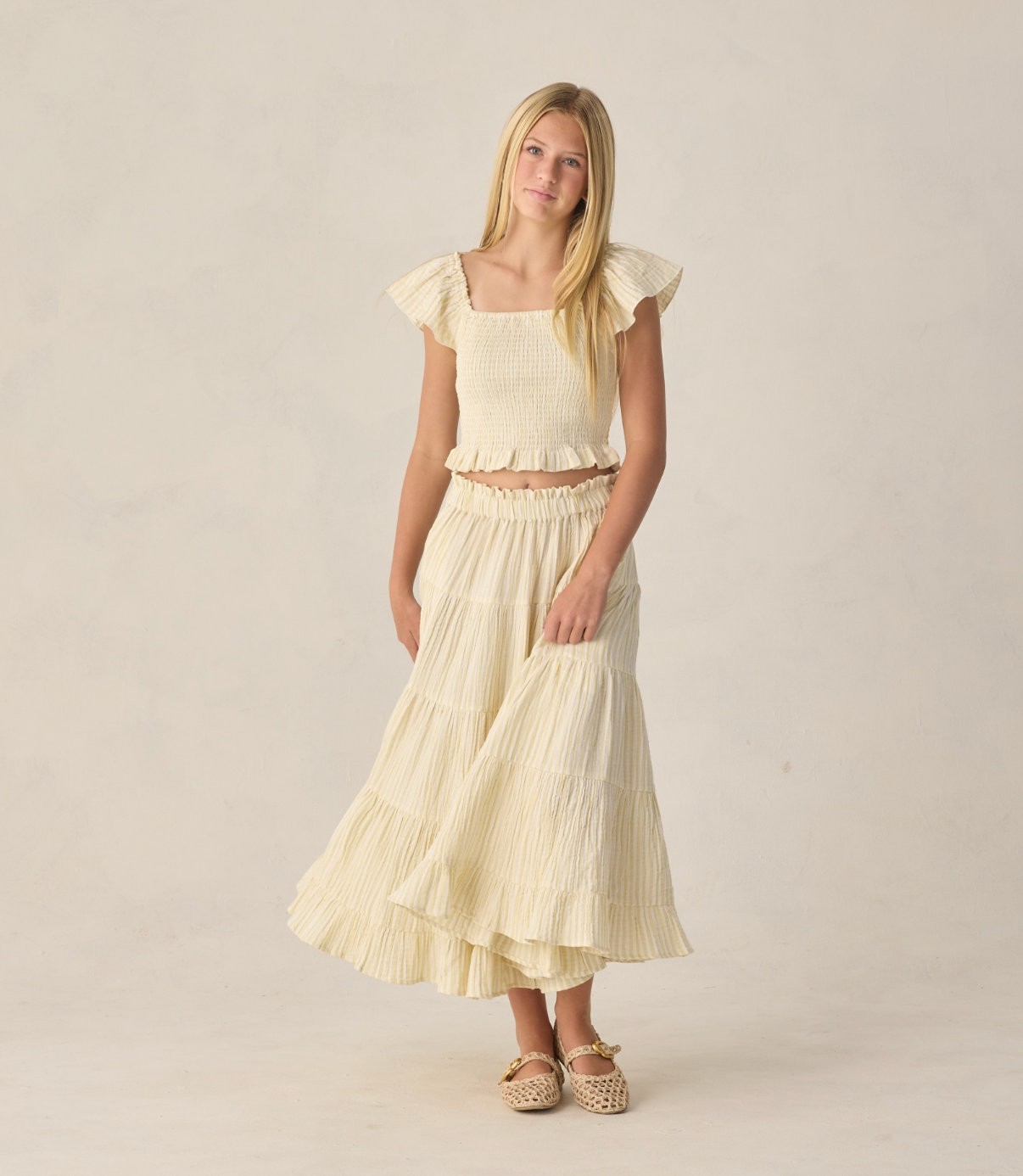 Teen Ruffle Tiered Maxi Skirt Citron Stripe