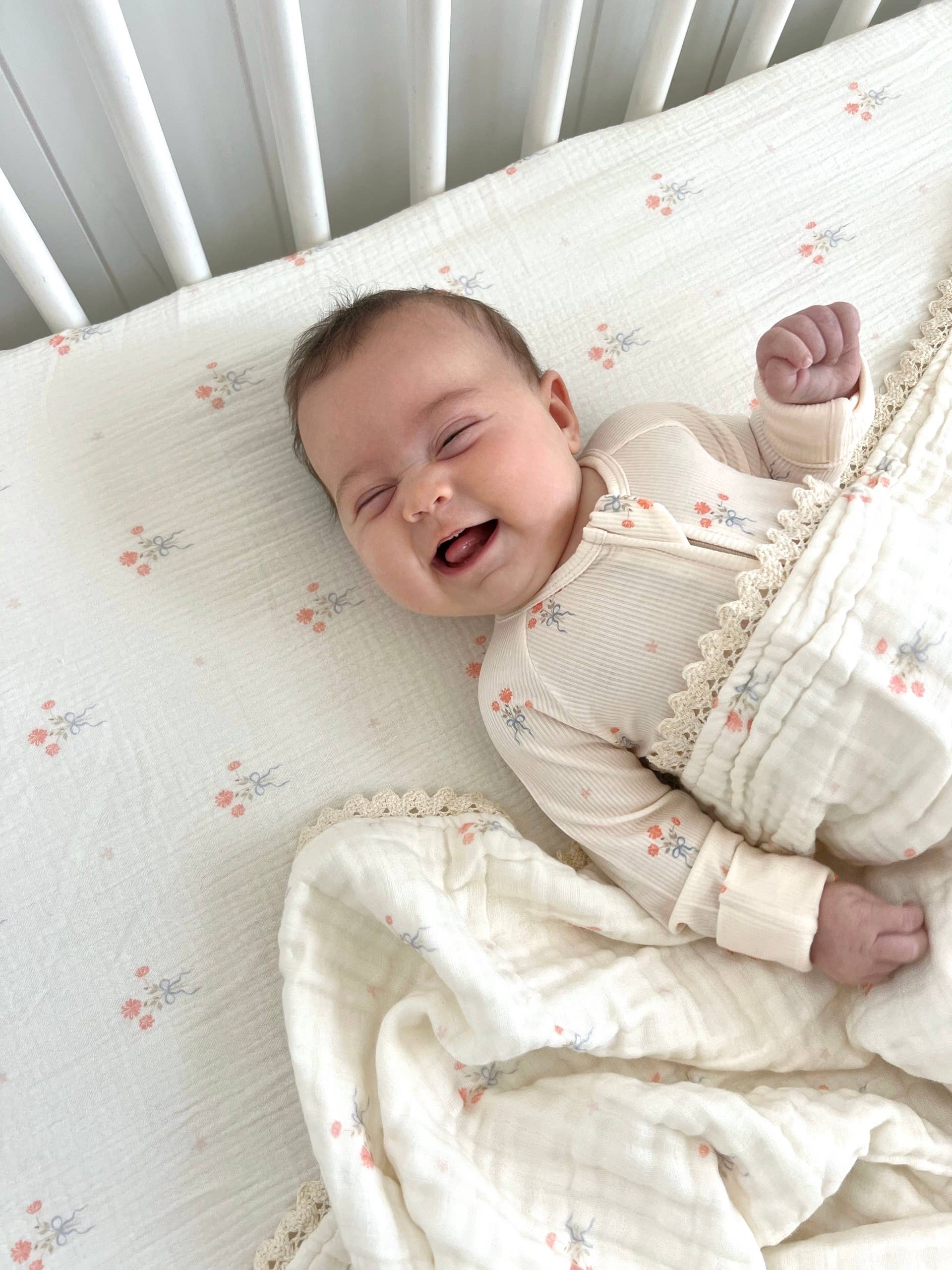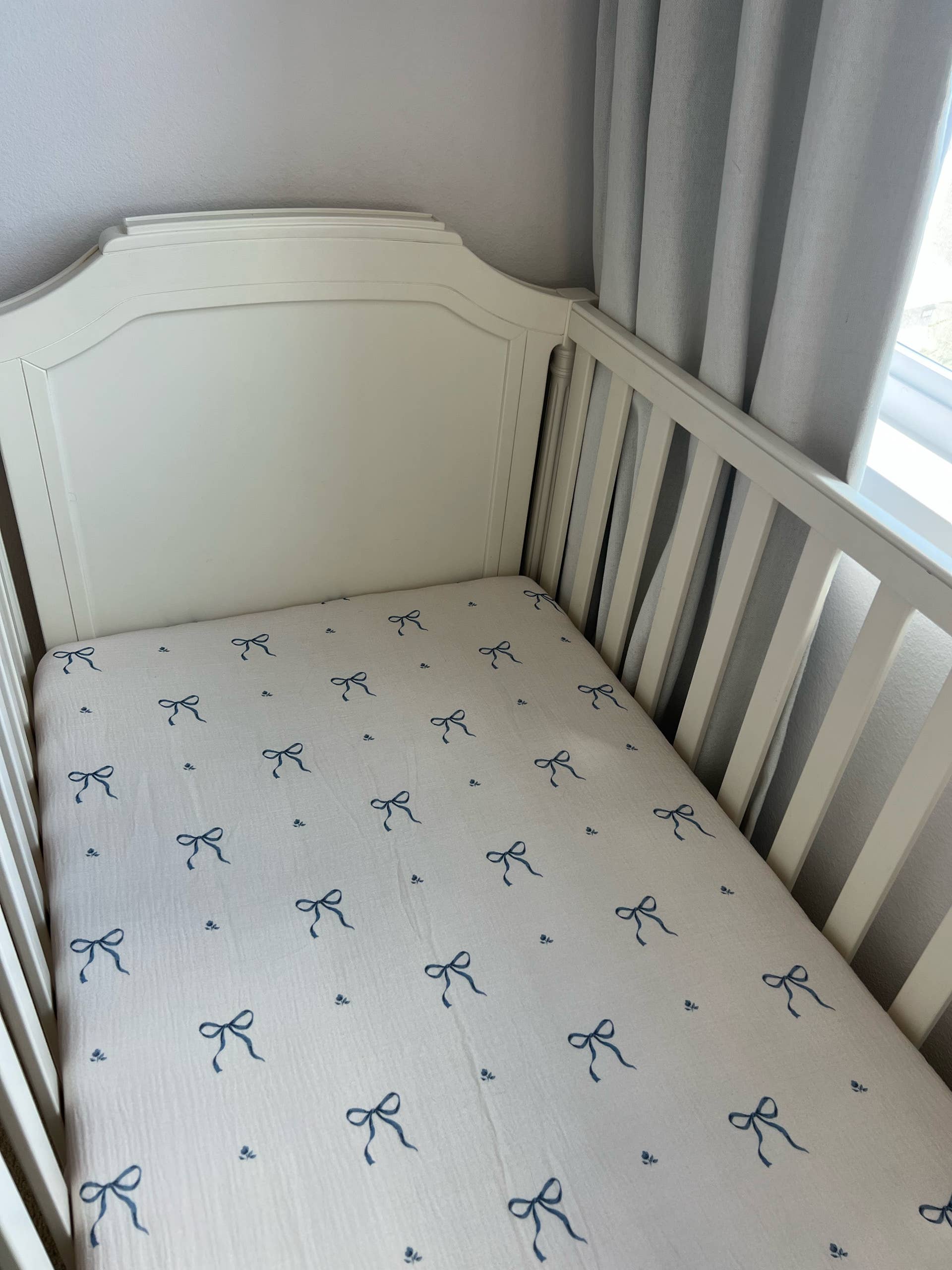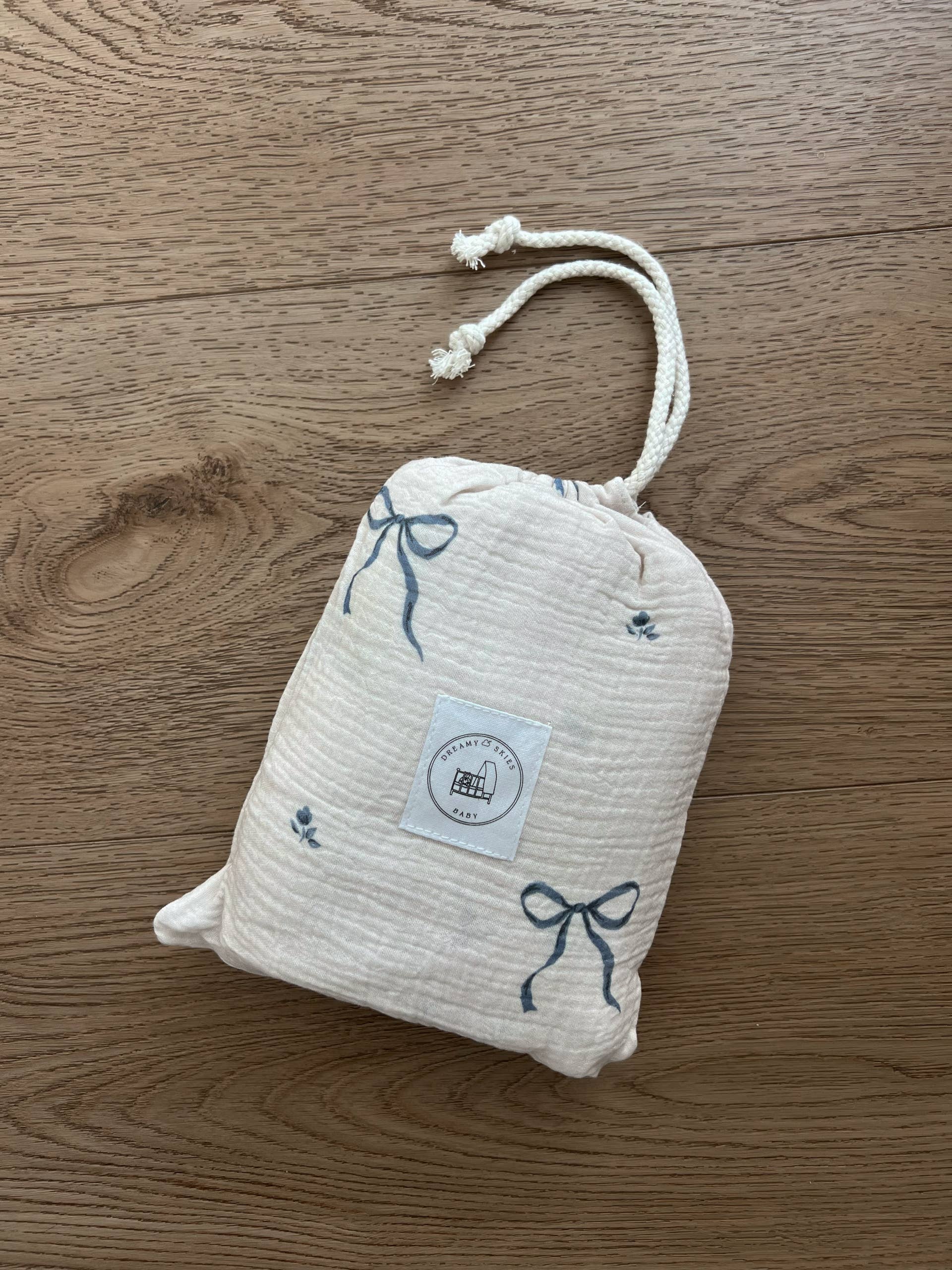 Blue Bows Cotton Gauze Crib Sheet