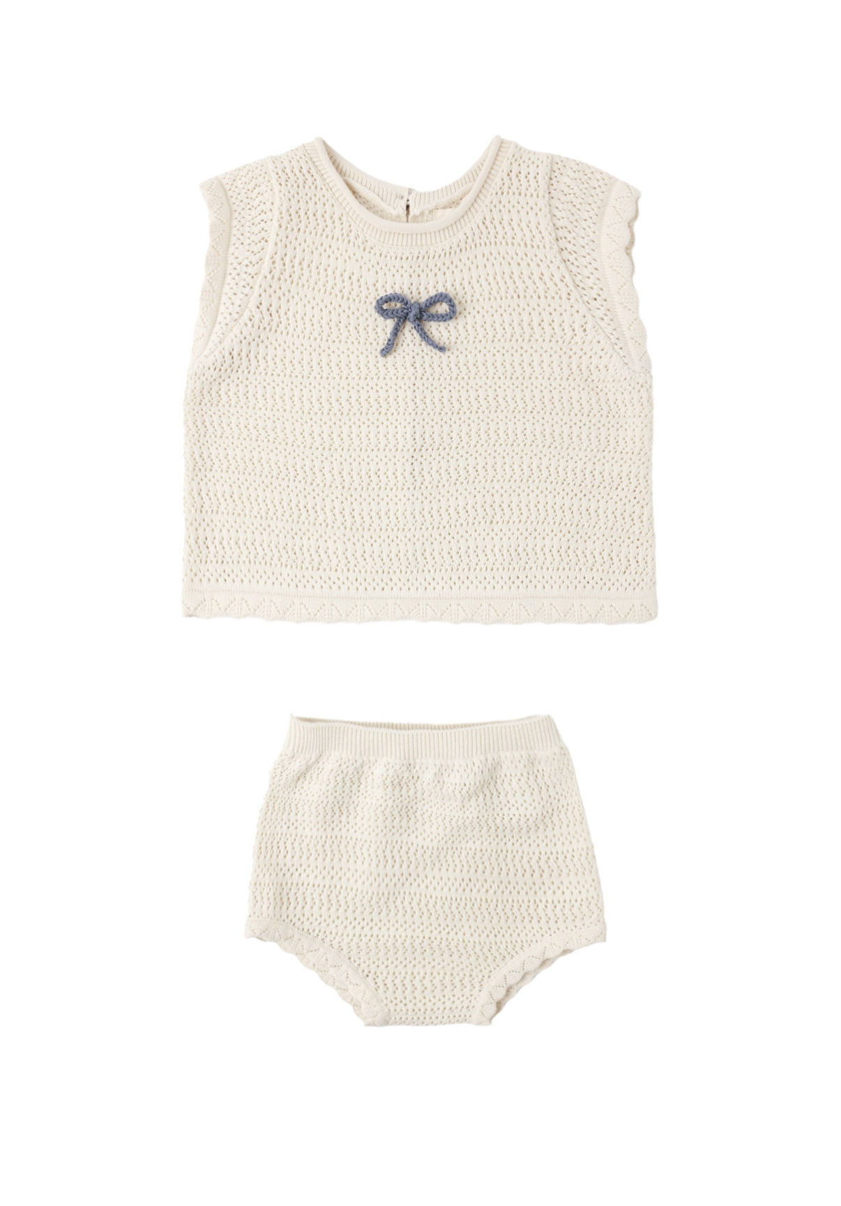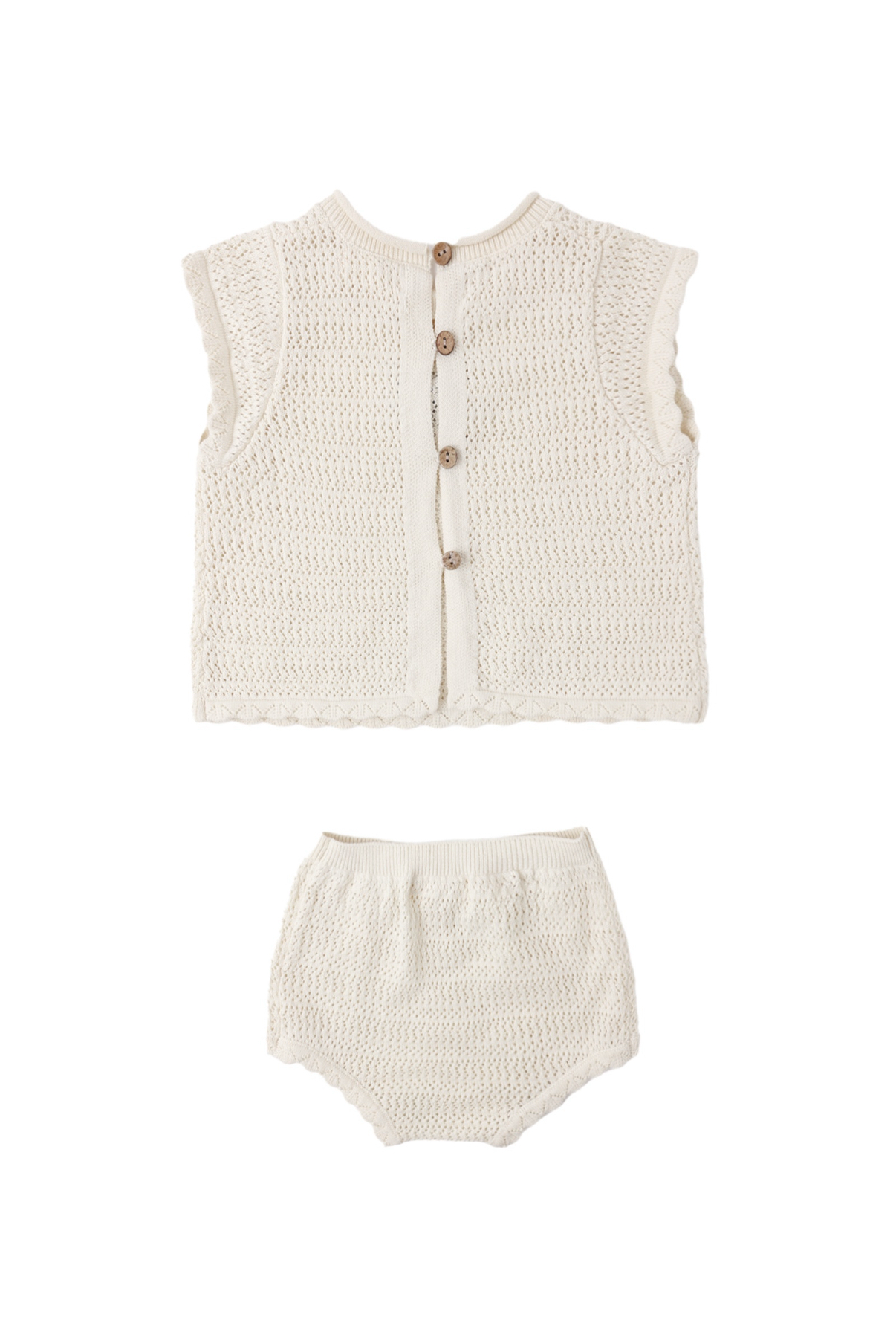 Scallop Knit Baby Set Natural