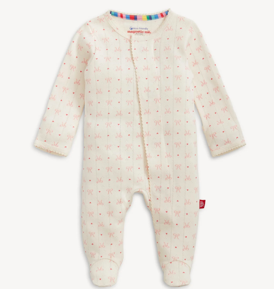 Heart and Bow Pointelle Magnetic Footie